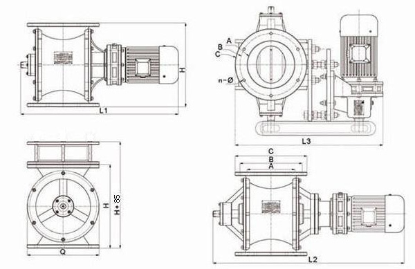 型號 | A | B | C | H | Q | L1 (內(nèi)) | L2 (外) | L3 (鏈) | n-Ф | 工作溫度 ℃ | 轉(zhuǎn)速 轉(zhuǎn)/分 | 電機功率KW |